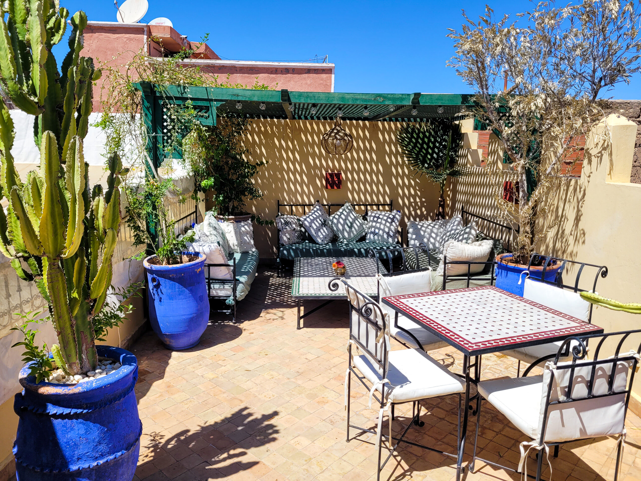 El riad es una vivienda tradicional de la medina de Marrakech. Verdadera joya de arquitectura, las diferentes habitaciones se encuentran alrededor de un patio central al aire libre. Es un lugar tranquilo y relajante donde uno se siente protegido del mundo exterior.